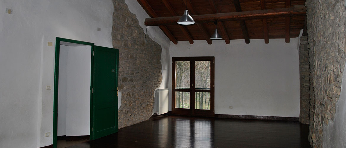 Al piano terra: sala da pranzo e cucina; al primo piano: sale attività e camere; al terzo piano e nella Casina due camere comuni.